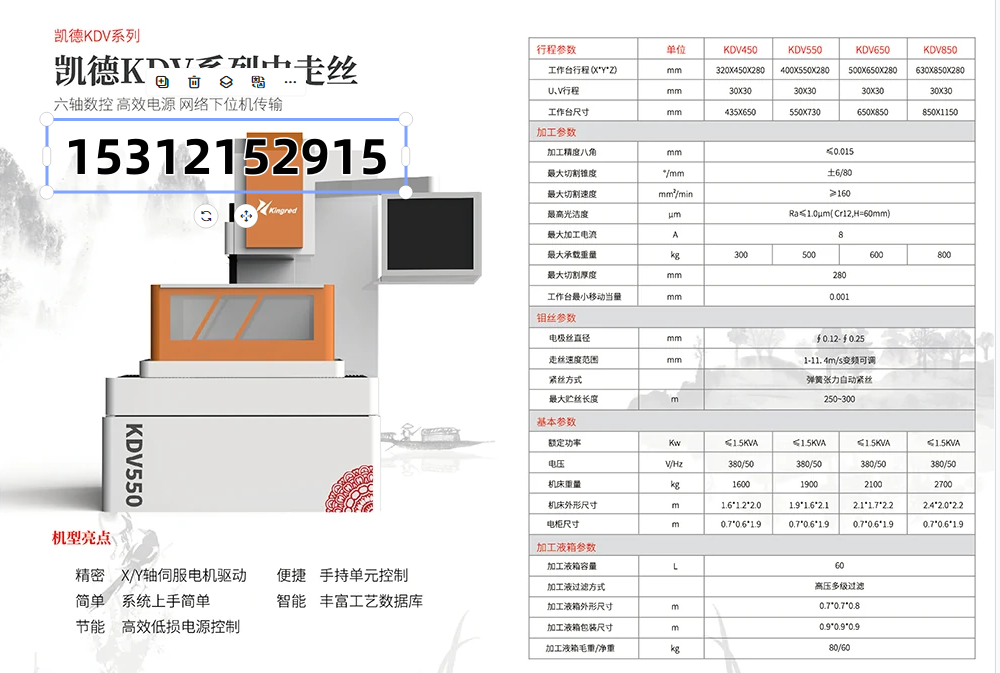 品牌:云帆 型号:400 加工定制:是 工作台面尺寸:400*300*320 工作台行程(X*Y):300*400 Z轴行程:320 最大切割厚度:400 mm 最大承重:300 主机重量:1200 最大加工速度:10 mm/min 最大加工电流:50 A 最小电极消耗比:50 表面粗糙度:500 um 输入电压:380 电极丝直径范围:20 机床导轨:硬轨 加工精度:0.005